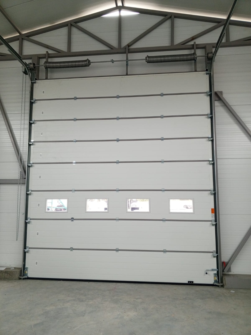 Секционные промышленные ворота 4000х4300 ProTrend стандартный монтаж RAL9006 серебристый с окнами