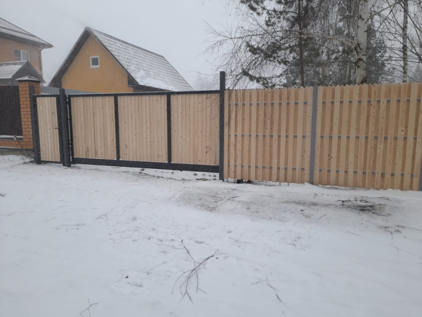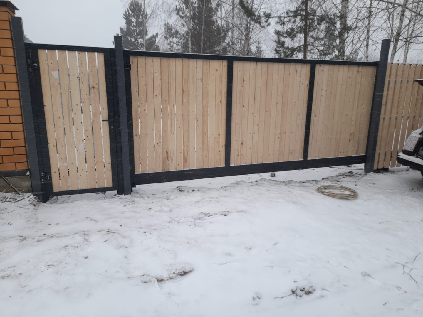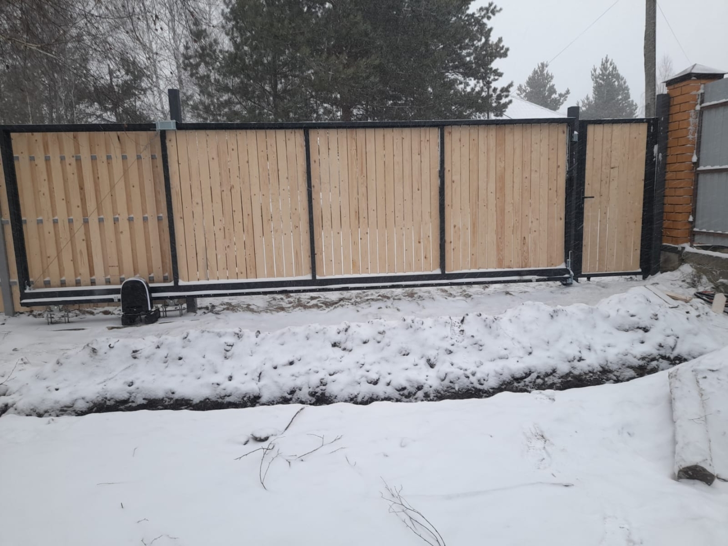 Въездные откатные ворота 3650х1875 и калитка 800х1875 с заполнением заказчика